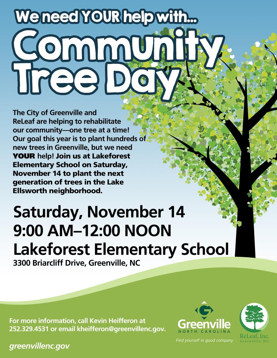 Our goal this year is to plant hundreds of new trees in Greenville, but we need YOUR help! Join us at Lakeforest Elementary School on Saturday, November 14 to plant the next generation of trees in the Lake Ellsworth neighborhood.