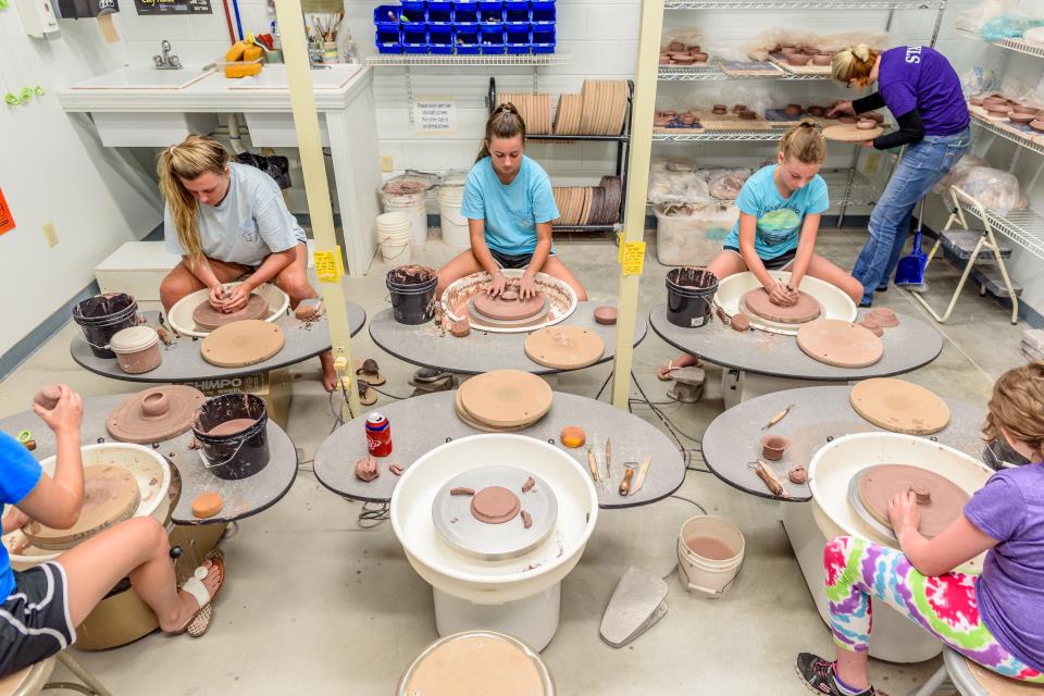 Club members may use the facility, wheels, equipment, & tools when classes are not in progress. Electric throwing wheels, throwing and modeling tools, North Star Big Blue hand extruder, and a wide variety of glazes are available for club use. To enroll, participants must have taken at least one Pottery/Throwing class at the Center for Arts & Crafts and go through an orientation with the supervisor or Pottery Coordinator. Participants must purchase clay at the facility for $25 per 25 lb. bag. We strive to provide top quality materials and services to our members and students. Due to the nature of firing and the community center environment, bisque and glaze pottery results cannot be guaranteed. The Center for Arts & Crafts and the City of Greenville are not liable for any kiln firing issues. Check the current brochure for class times. Calendars are also posted at the Center for Arts & Crafts and on Facebook @JayceeParkArts. Please contact Facility Supervisor, Sara Caropreso Ford for more information.